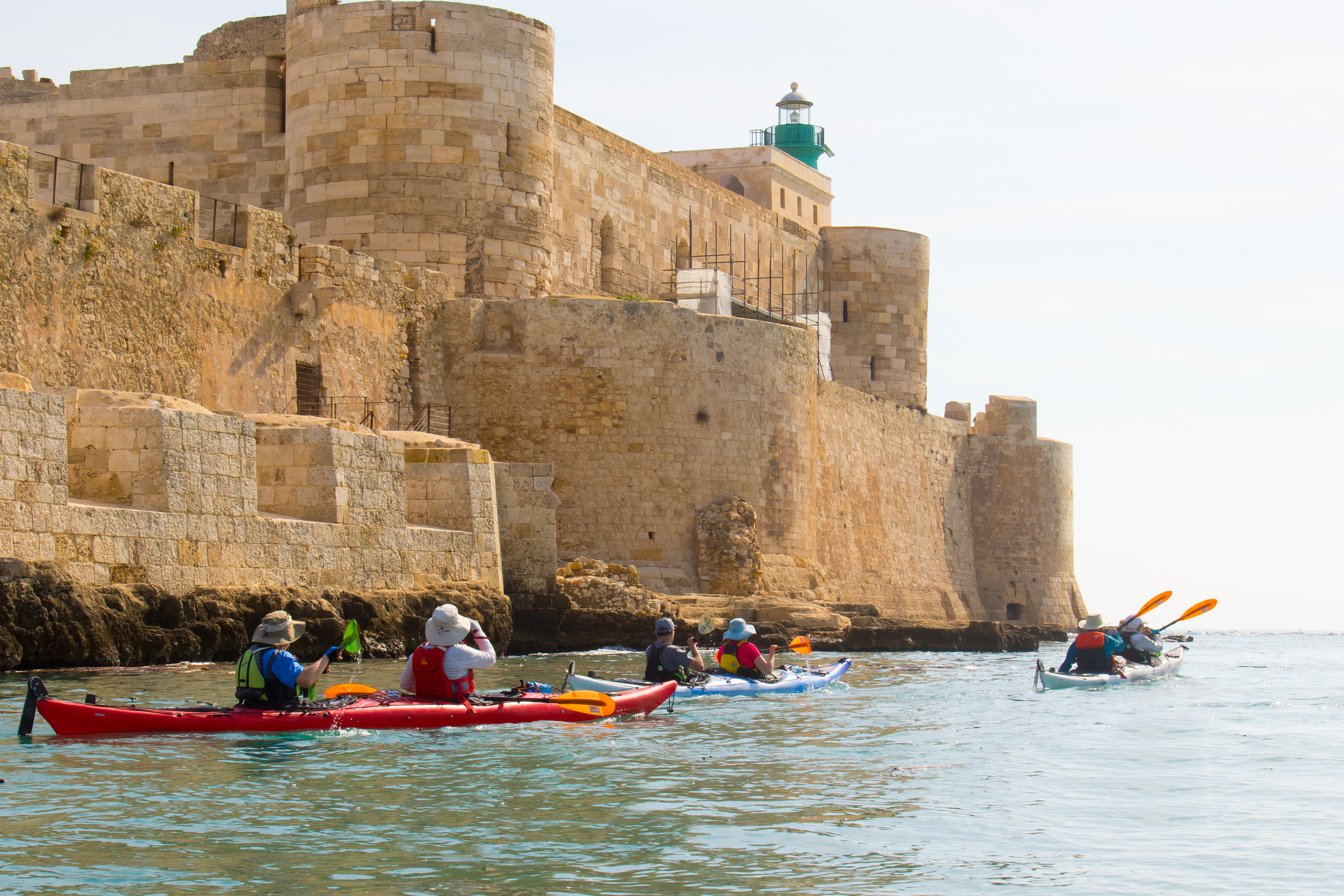 Our Sicilian kayaking odyssey traces the island's legendary eastern coast, following the mythical path of Homer's Odysseus along the Ionian Sea. We glide alongside the ancient city walls of Syracuse and land at the mythical Fountain of Arethusa. To the south, the rugged beauty of Capo Passero offers a dramatic contrast, allowing us to explore secluded coves that are inaccessible by land. Our trip includes an exploration of Mount Etna and paddling the azure waters around Taormina's Isola Bella, the "Pearl of the Ionian Sea. This carefully curated route is more than just paddling – it's a voyage through time, myth, and the heart of Sicilian coastal culture, offering discoveries with each stroke of the paddle.