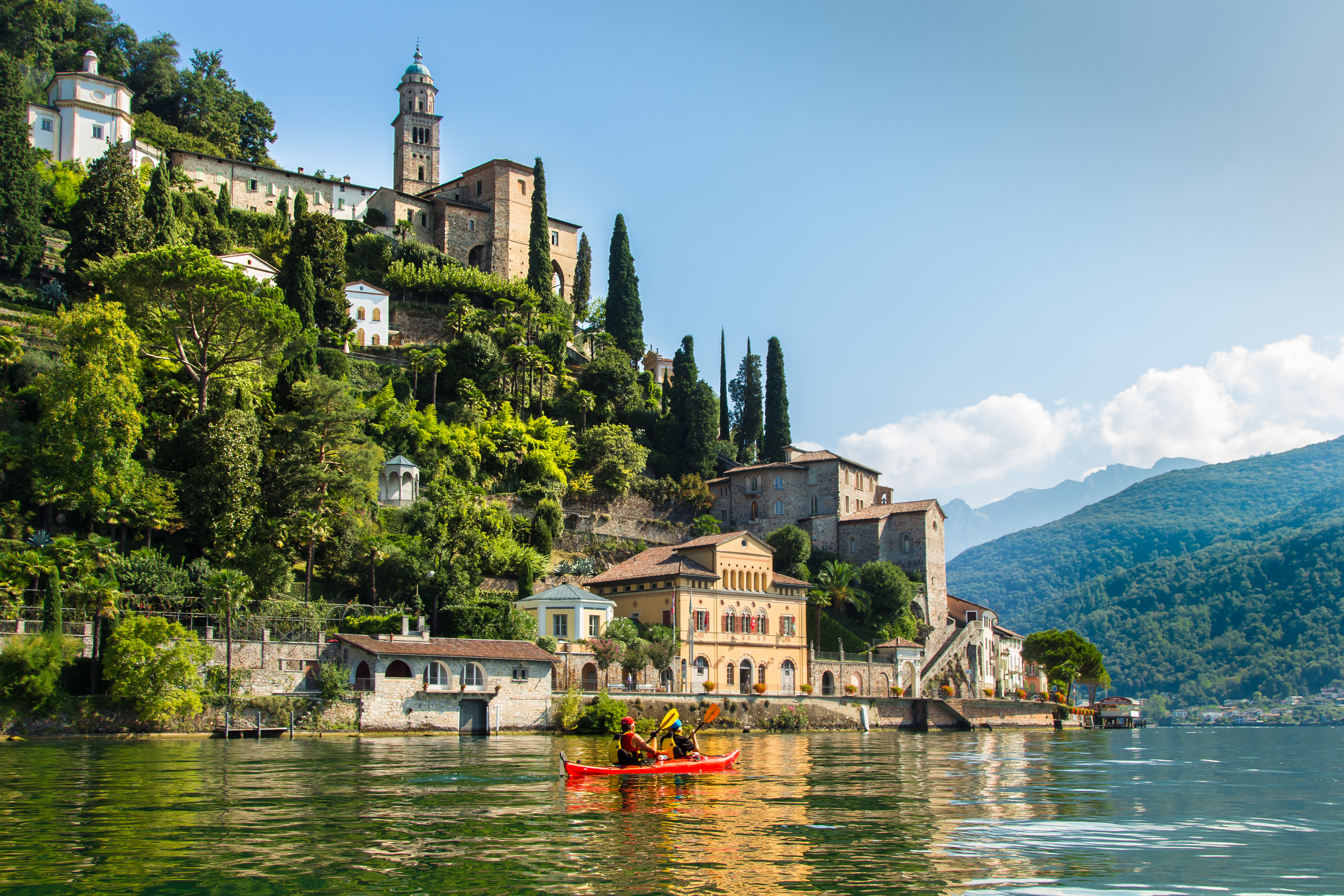 After breakfast, we'll board the van for a short drive overland to another arm of Lago Lugano and our launch point at the village of Melide. Our destination is the picture-perfect village of Morcote. We'll explore the shaded arcades and flower-lined alleyways of this village that dates back to the 10th century. After lunch at a lakefront restaurant, we'll walk up to the gardens of the 13th-century church of Santa Maria del Sasso, which was rebuilt in the Renaissance style in the 15th century and subsequently in the Baroque style in the 18th century. Boarding the kayaks, we'll continue along the glacially carved shores of the lake, taking out at the town of Casoro. We'll have time to relax and enjoy some of the charms of the Swiss–Mediterranean city of Lugano before dinner out.